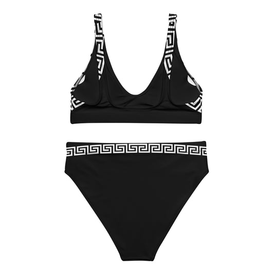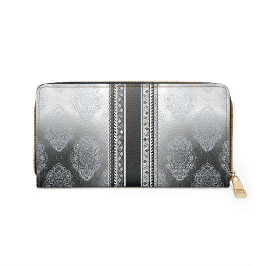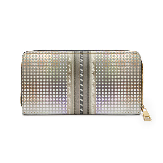Greek Key Bronze Circles Zipper Vegan Leather Wallet