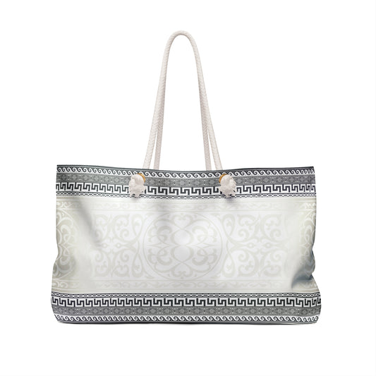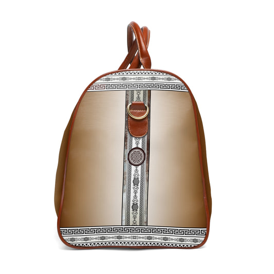 Greek Key Brown Khaki White Waterproof Travel Bag