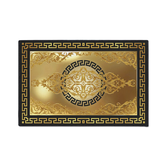 Greek Key Gold Black Baroque Heavy Duty Floor Mat