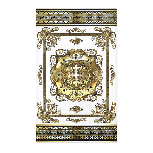 Greek Key Design Gold Striped White Sherpa Fleece Blanket