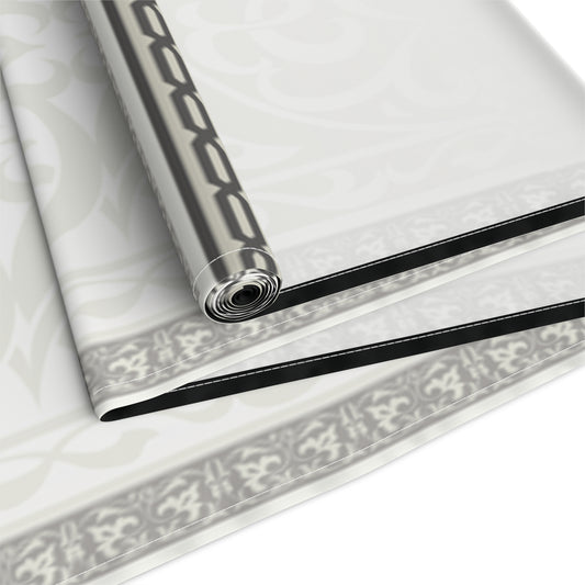 Greek Key Cream Ornate Baroque Black Gray Table Runner (Cotton, Poly)