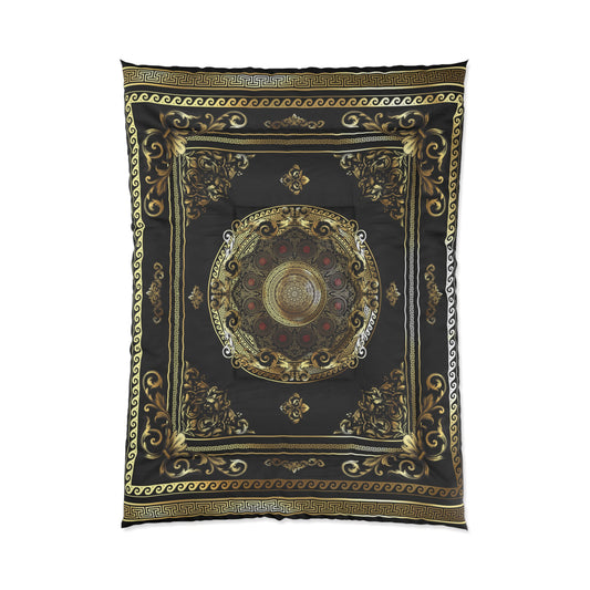 Greek Key Gold Black Red Ornate Baroque Comforter