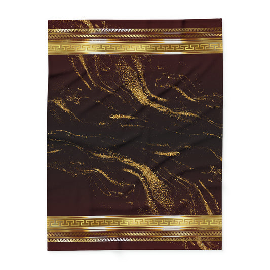 Greek Key Gold Flake Maroon Arctic Fleece Blanket