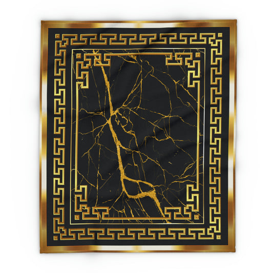 Greek Key Gold Black Marbleized Arctic Fleece Blanket