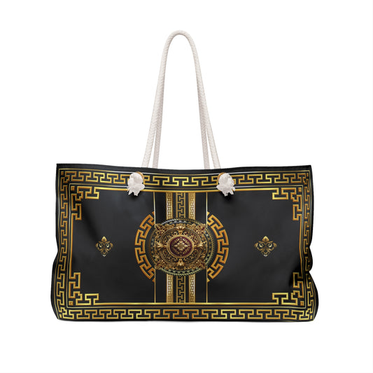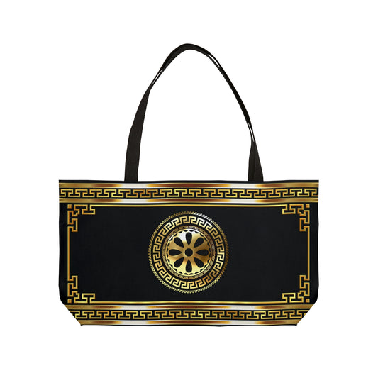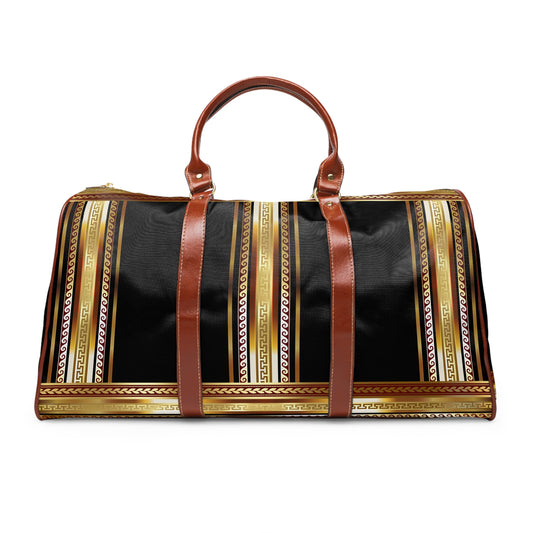 Greek Key Gold Black Medallion Waterproof Travel Bag