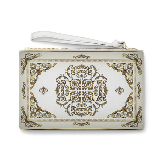 Greek Key Gold Cream Ornate Baroque Clutch Bag