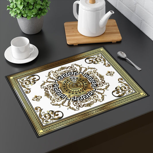 Greek Key Gold Black White Ornate Baroque Table Runner