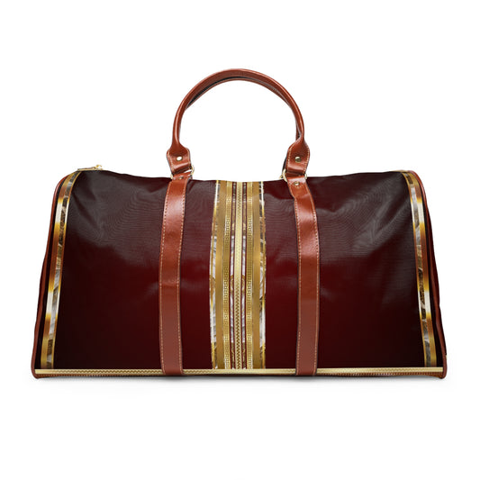 Greek Key Maroon Gold Stone Pattern Waterproof Travel Bag