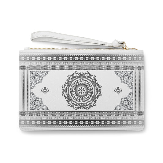 Greek Key Grey White Vegan Leather Clutch Bag