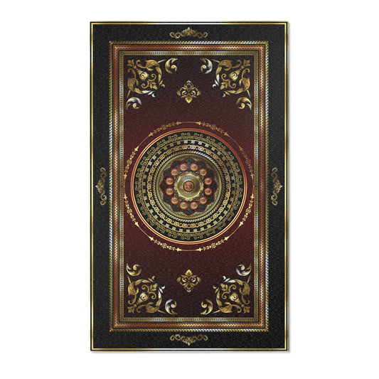 Greek Key Ornate Baroque Red Gold Black Round Rug