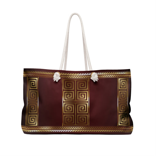 Greek Key Maroon Gold Weekender Bag