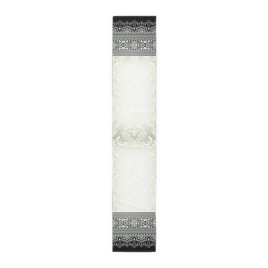 Greek Key Ornate Baroque Cream Black White Table Runner (Cotton, Poly)
