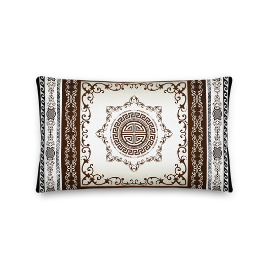 Greek Key Maroon Khaki Ornate Premium Pillow