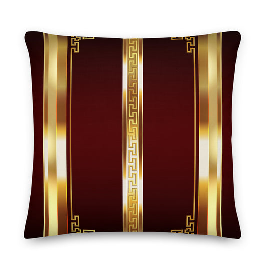 Greek Key Maroon Gold Stripes Premium Pillow
