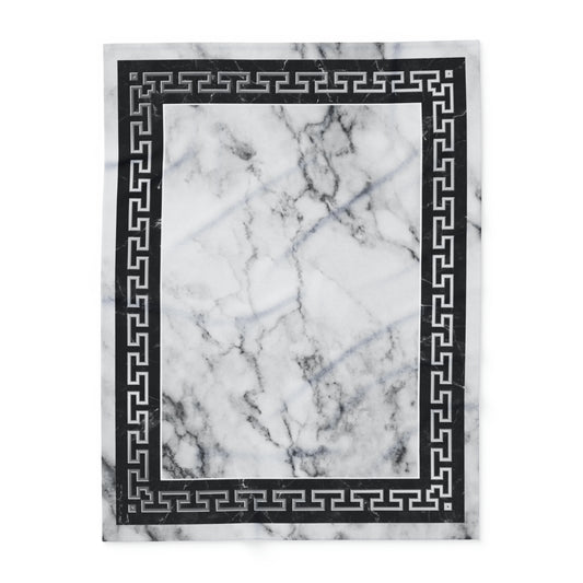 Greek Key White Black Marbleized Arctic Fleece Blanket