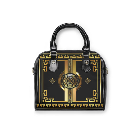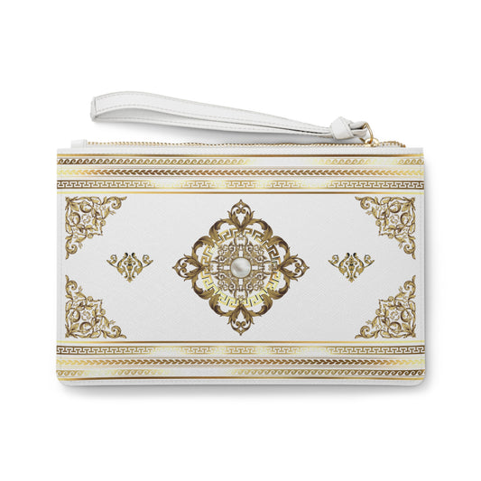 Greek Key White & Gold Medallion Vegan Leather Clutch Bag