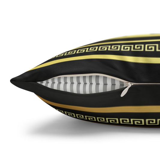 Greek Keys Gold Black Faux Suede Square Pillow Case