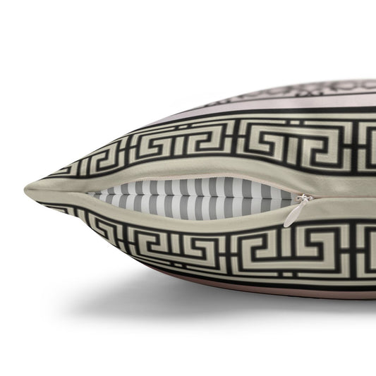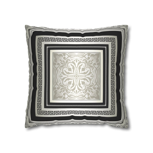 Greek Keys Cream Gray Black Faux Suede Square Pillow Case