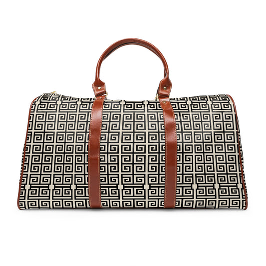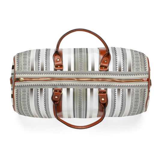 Greek Key Stripe Khaki Gray Waterproof Travel Bag