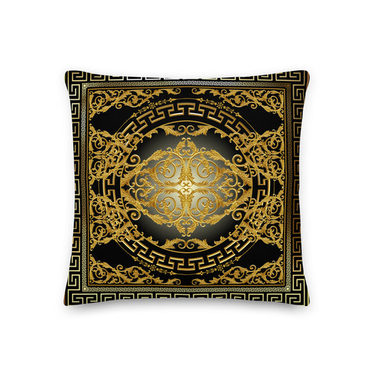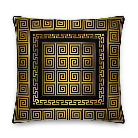 Greek Keys Golden Ornate Baroque Black Premium Pillow