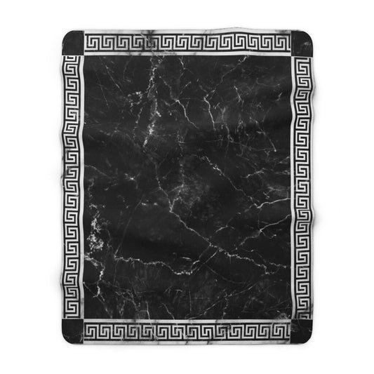 Greek Key White Grey Black Marble Sherpa Fleece Blanket