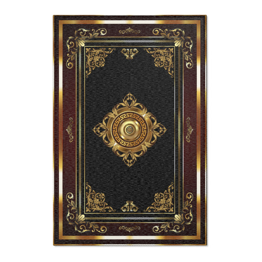 Baroque Gold Black Maroon Greek Key Ornate Area Rugs