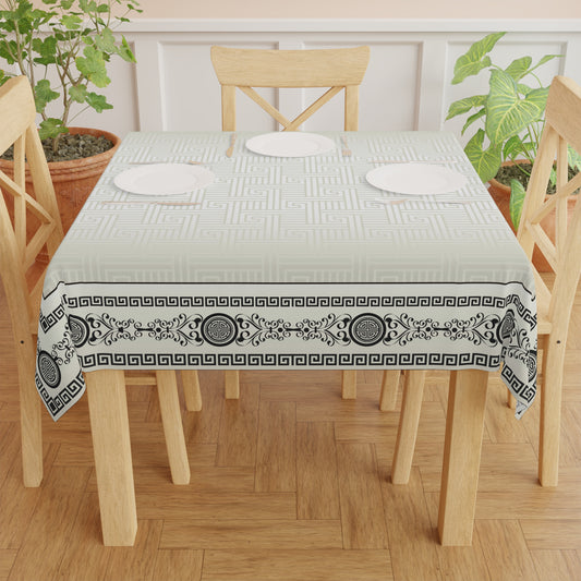 Baroque Ornate Black Cream Gray Greek Key Tablecloth