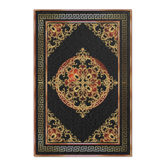 Baroque Gold Black Red Greek Key Ornate Area Rugs