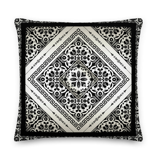 Black Cream Greek Key Ornate Baroque Tablecloth