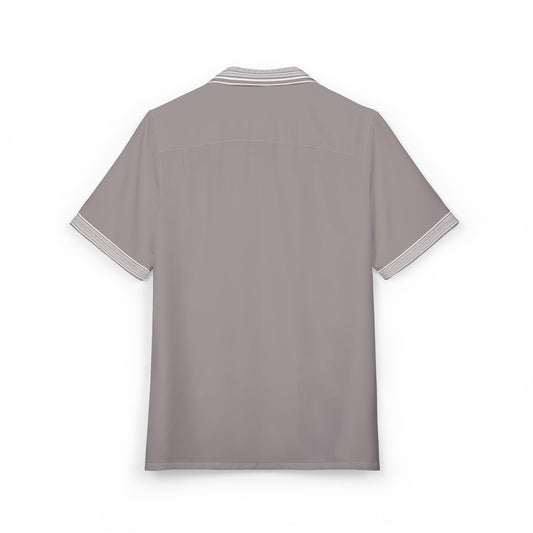 Taupe White Greek Key Hawaiian Button-Down Shirt