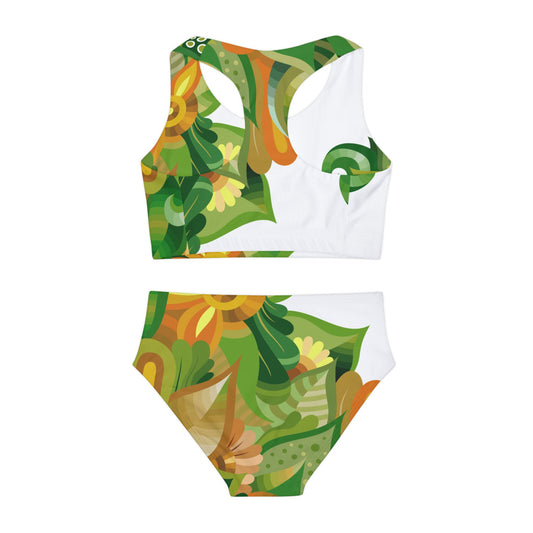 Tropical Floral Green Girls Two Piece Swimsuit Kiki Collection