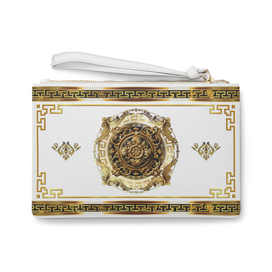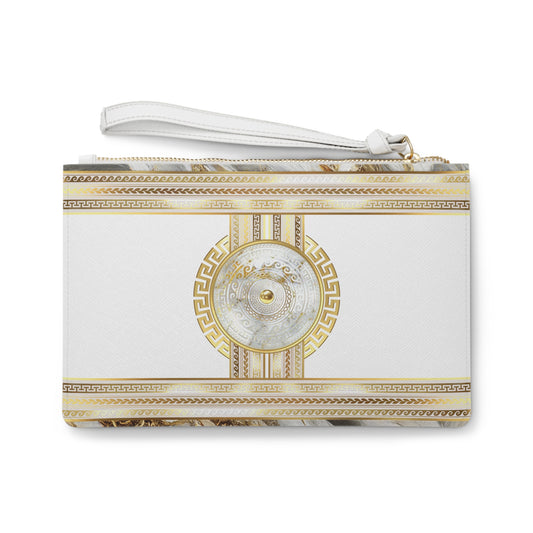 White & Gold Greek Key Vegan Leather Clutch Bag