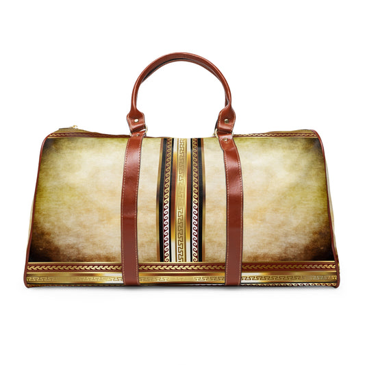 Vintage Style Greek Key Gold Marbleized Waterproof Travel Bag
