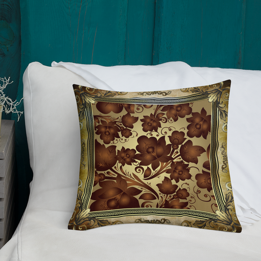 Vintage Style Greek Key Flowers Gold Red Premium Pillow