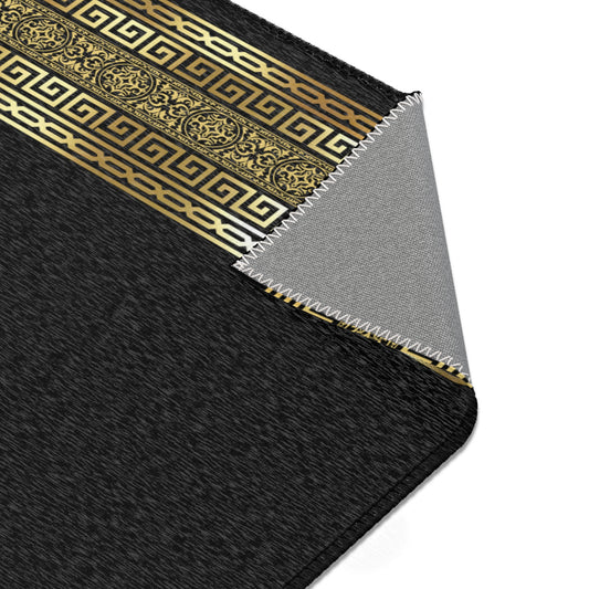 Gold & Black Greek Keys Gold Black Trim Area Rugs