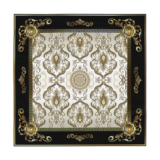 Gold Black Stone Greek Key Ornate Baroque Tablecloth