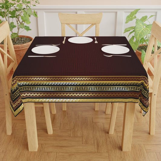 Gold Black Maroon Greek Key Ornate Baroque Tablecloth