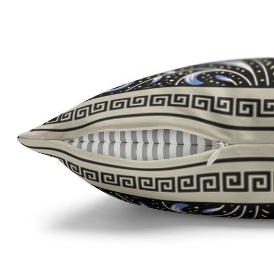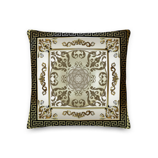 Floral Black Cream Ornate Greek Key Premium Pillow