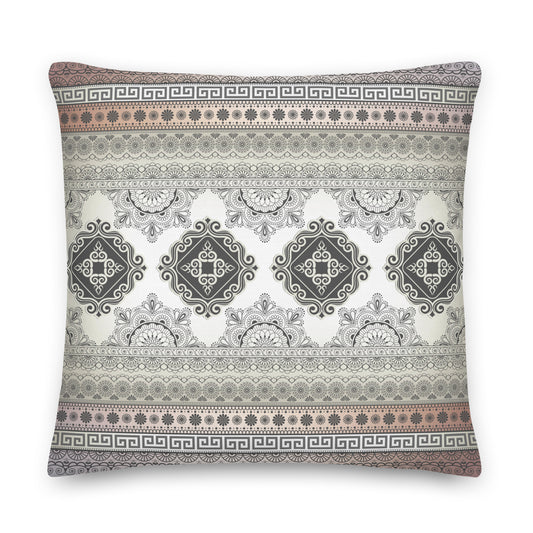 Floral Black Cream Pink Ornate Greek Key Premium Pillow
