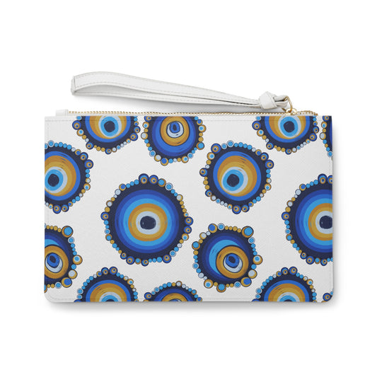 Greek Key White & Gold Medallion Vegan Leather Clutch Bag