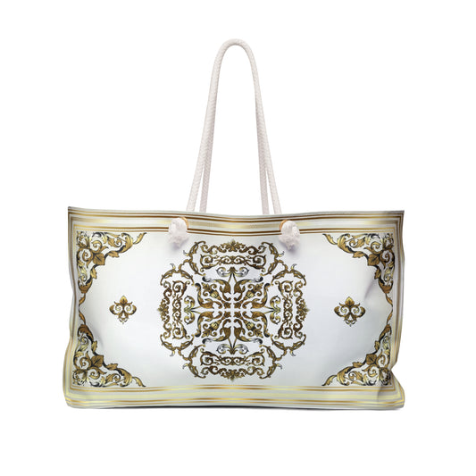 White Gold Greek Key Ornate Baroque Weekender Bag