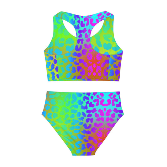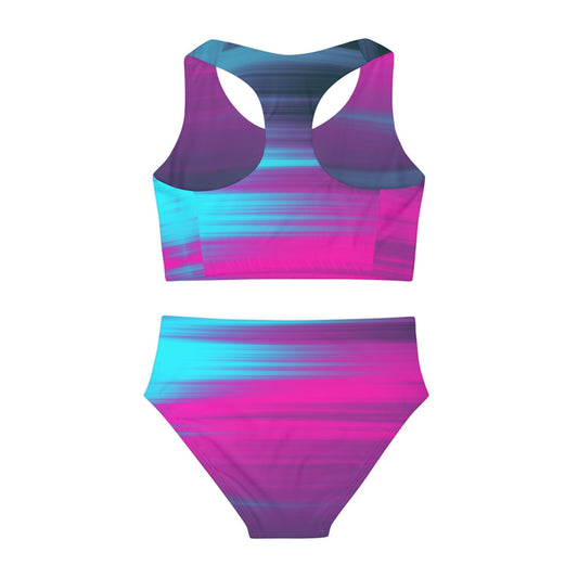 Neon Aqua Purple Pink Girls Two Piece Swimsuit