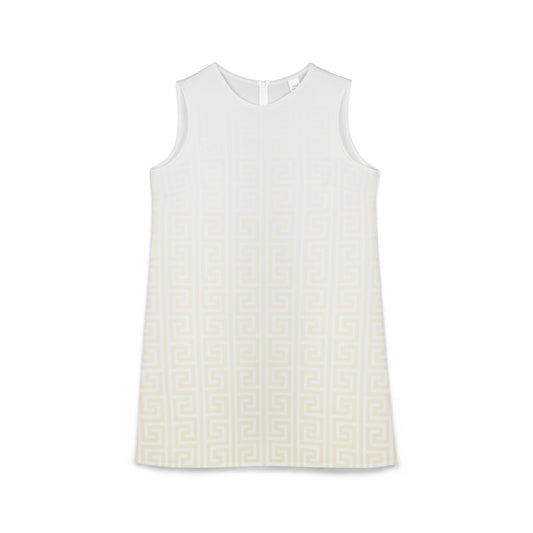 Light Yellow White Greek Key Black A-line Sleeveless Dress