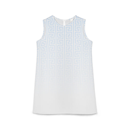 Light Blue White Greek Key Black A-line Sleeveless Dress