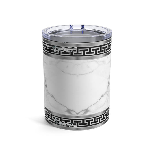 White Grey Marbleized Greek Key Design Tumbler 10oz