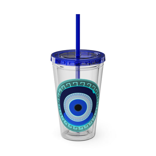 Mati Evil Eye Sunsplash Tumbler with Straw, 16oz