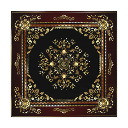 Gold Black Maroon Greek Key Ornate Baroque Tablecloth