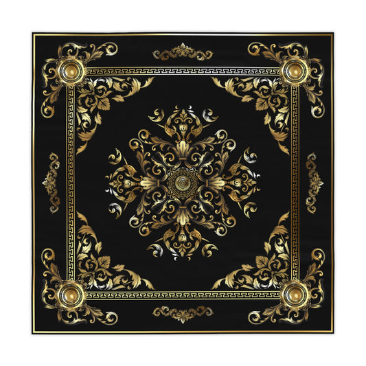 Gold Black Medallion Greek Key Ornate Baroque Tablecloth