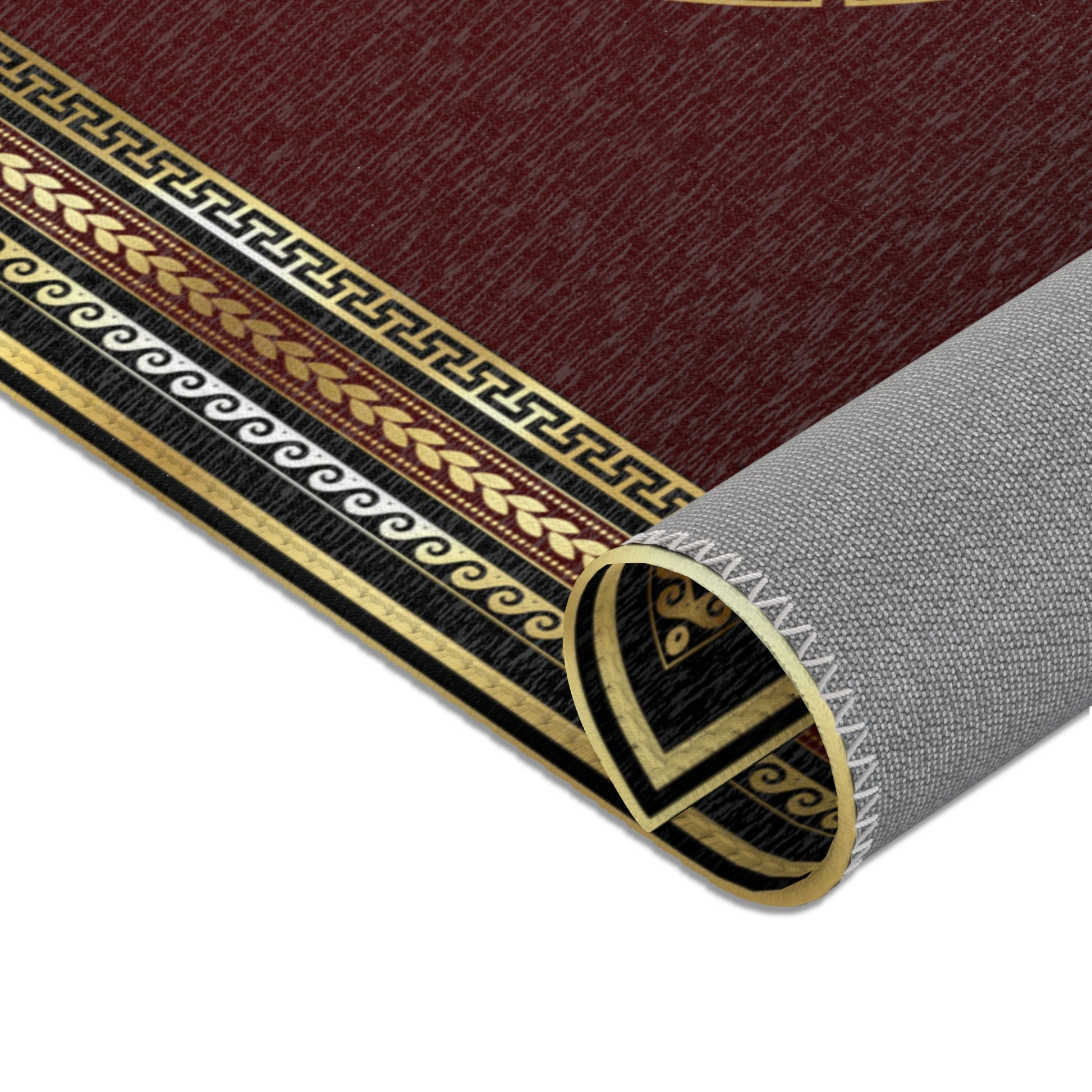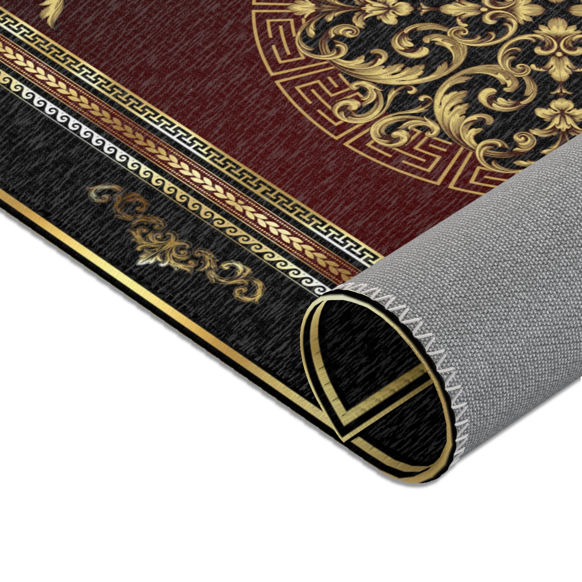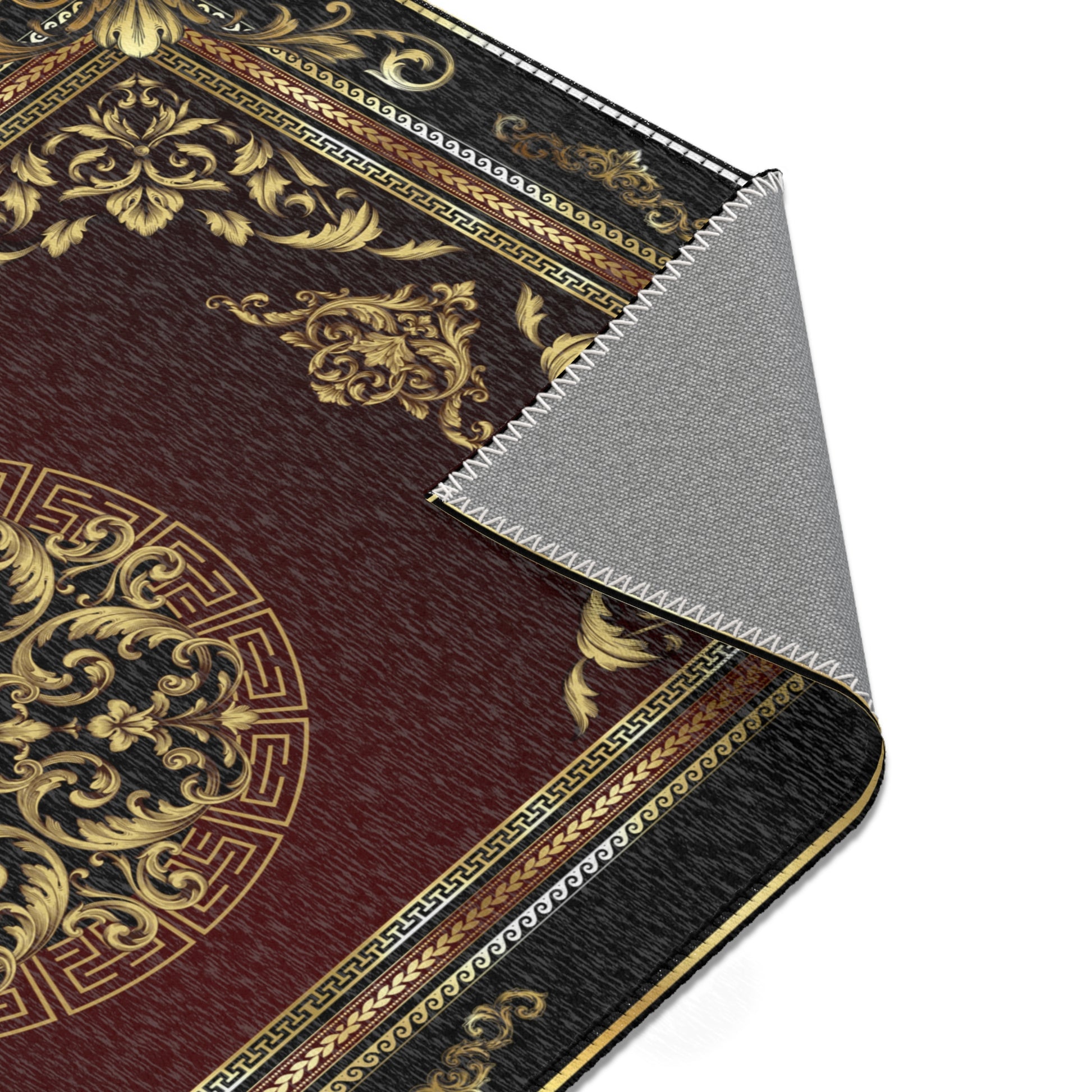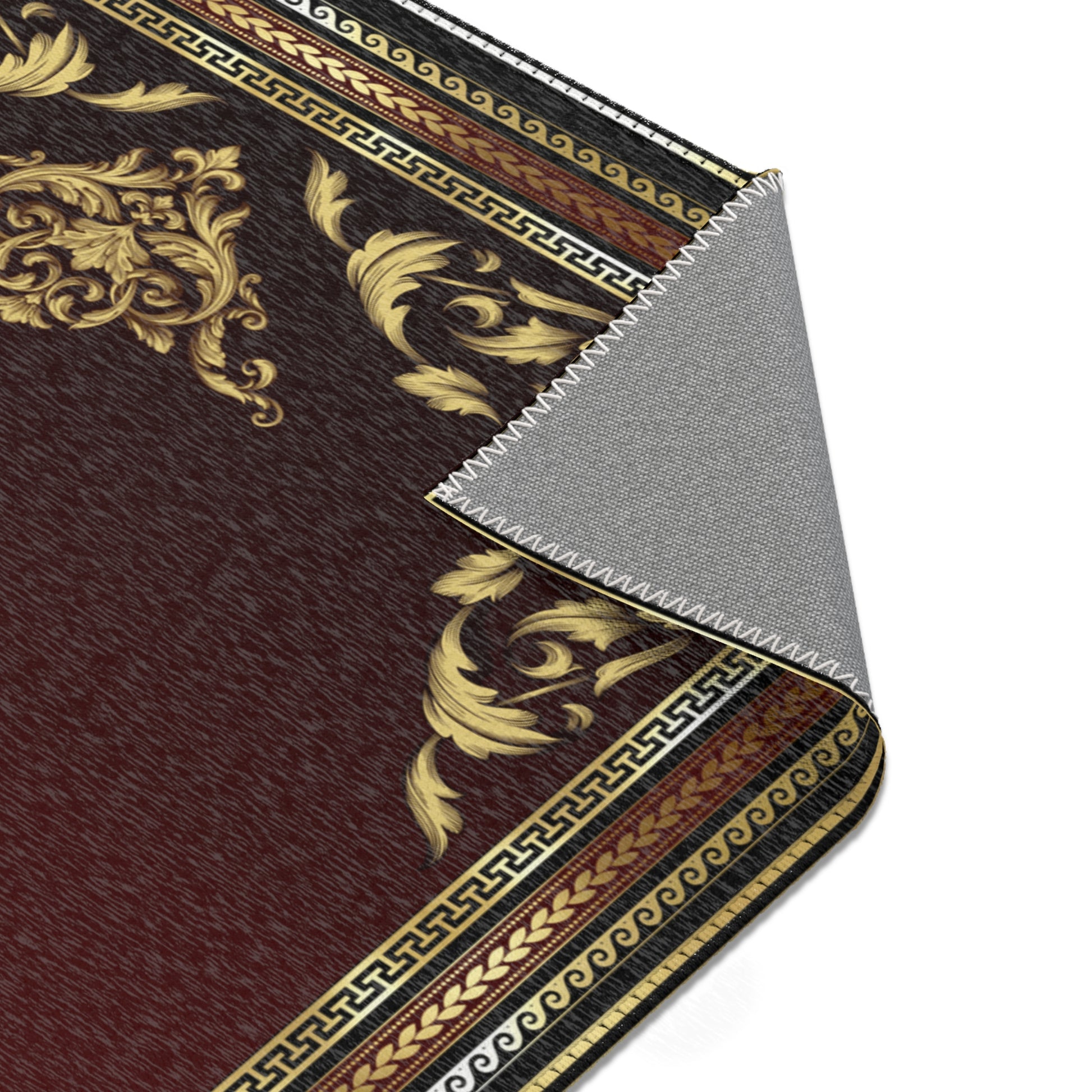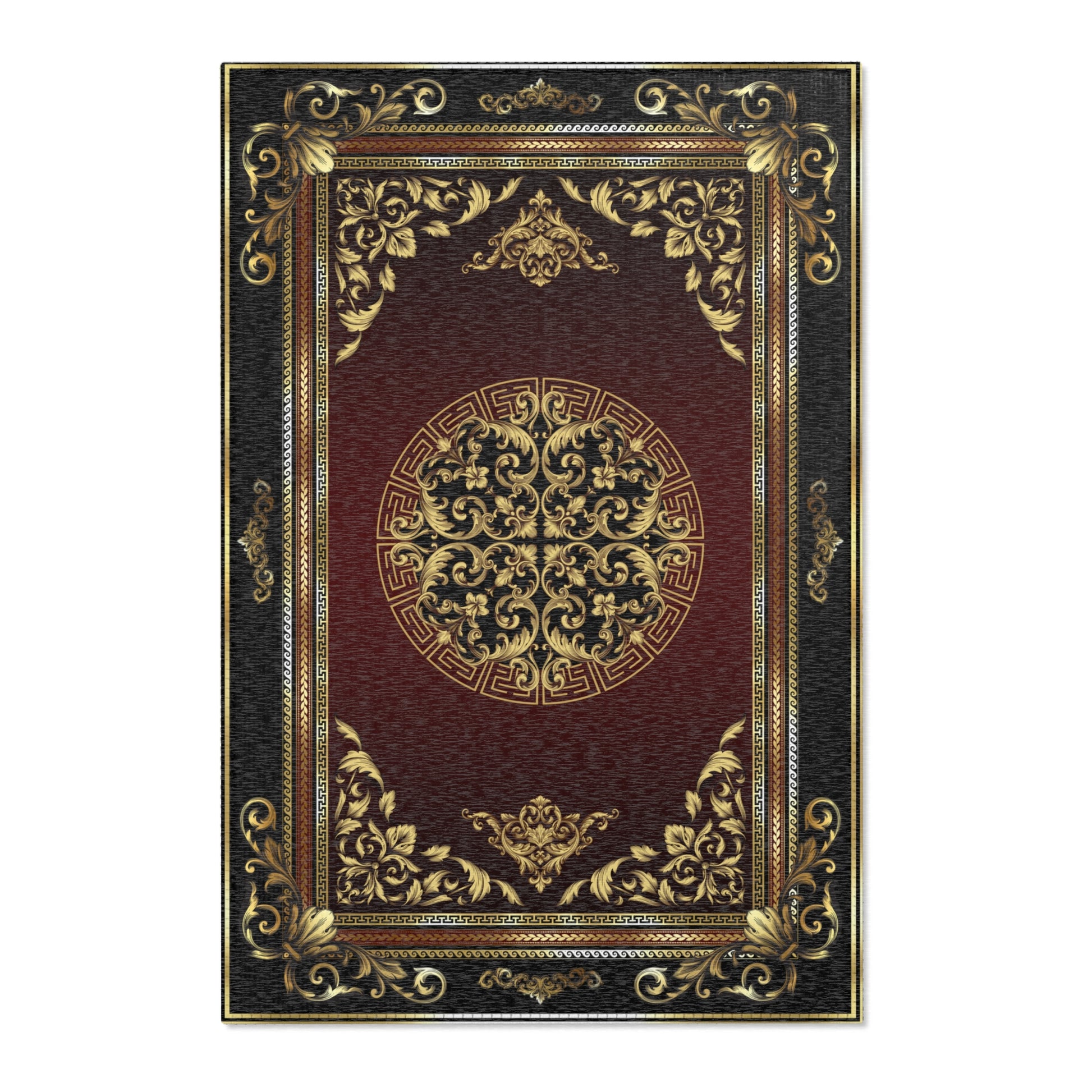 Baroque Ornate Black Gold Maroon Greek Key Area Rugs