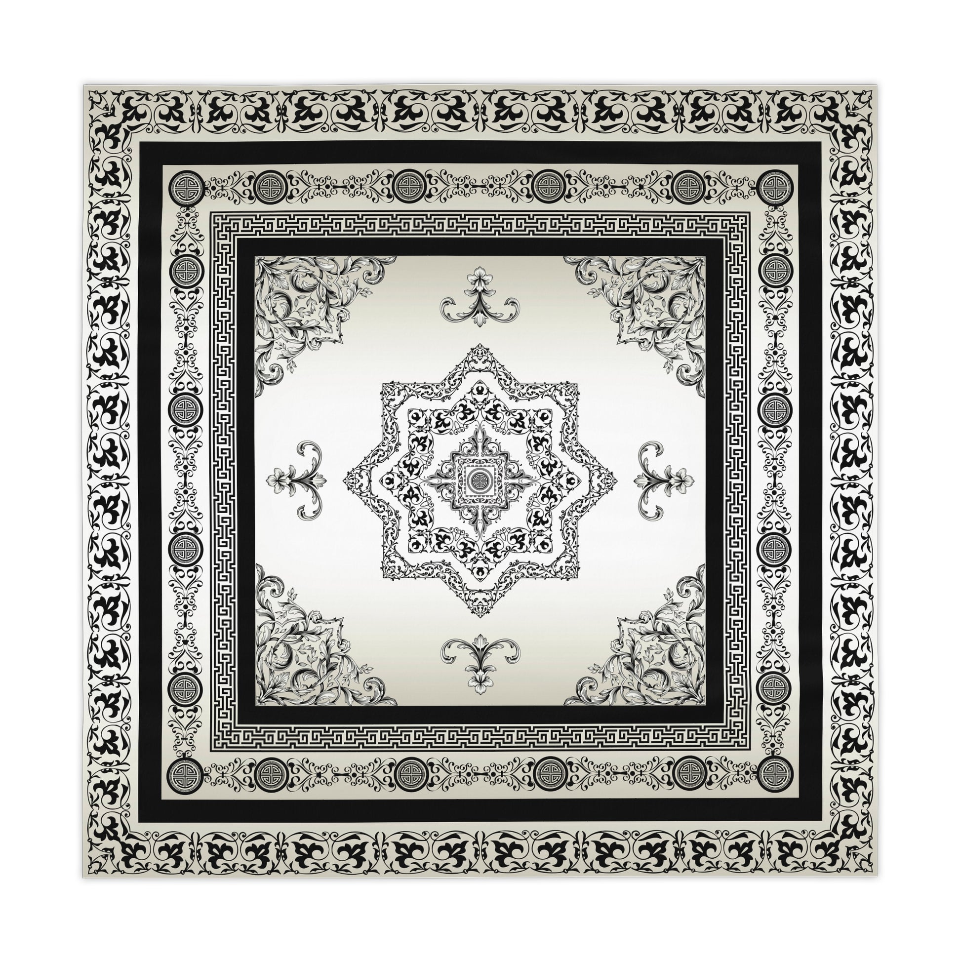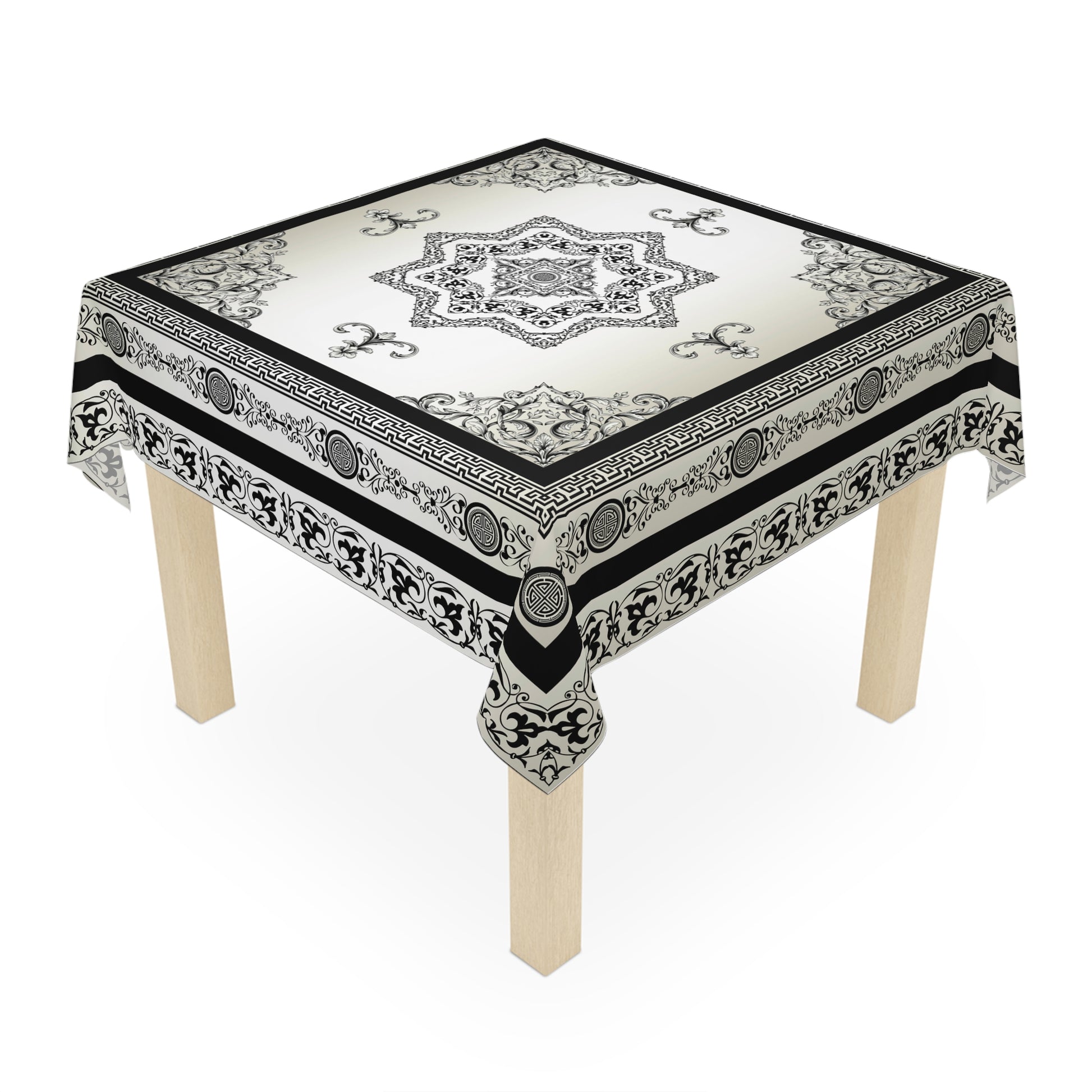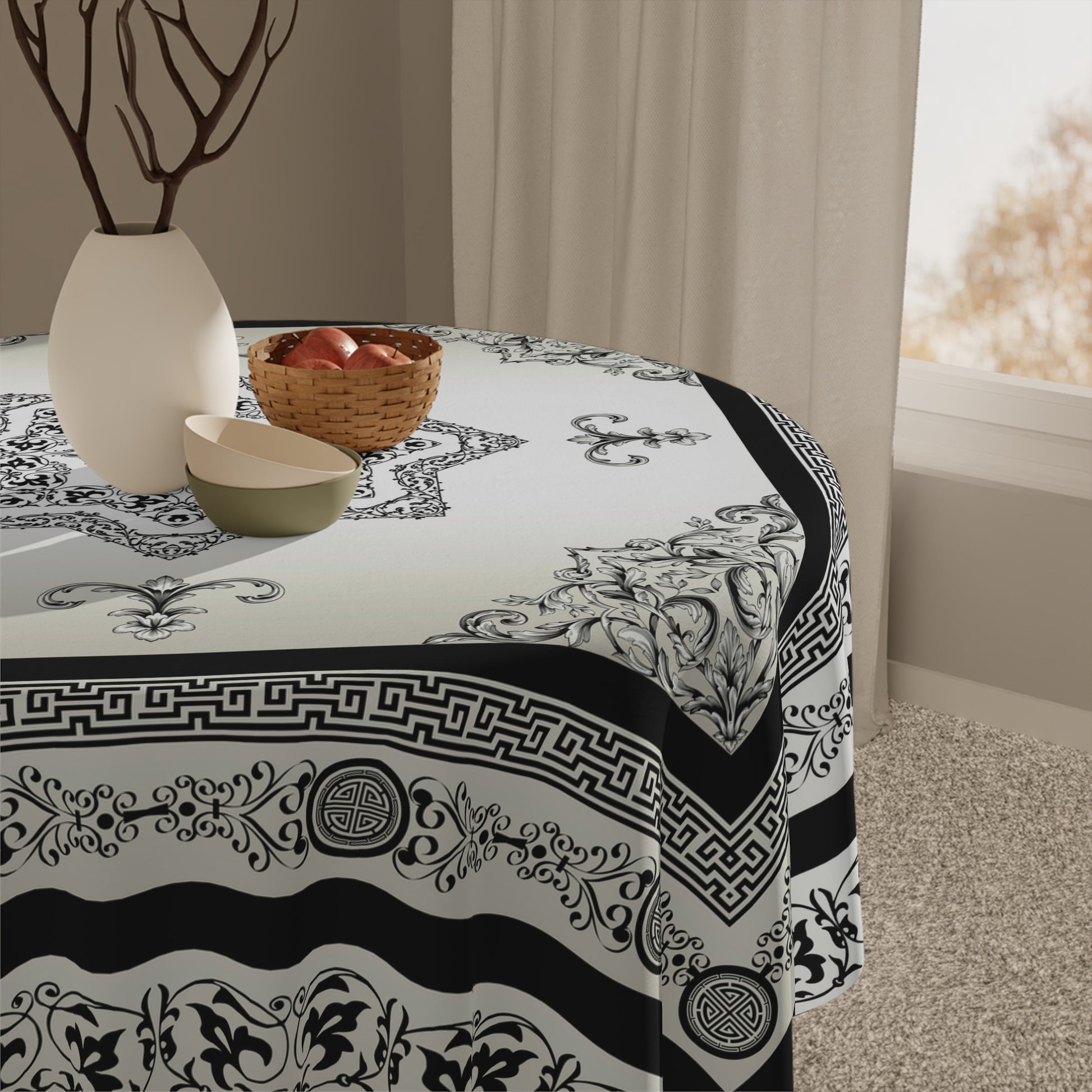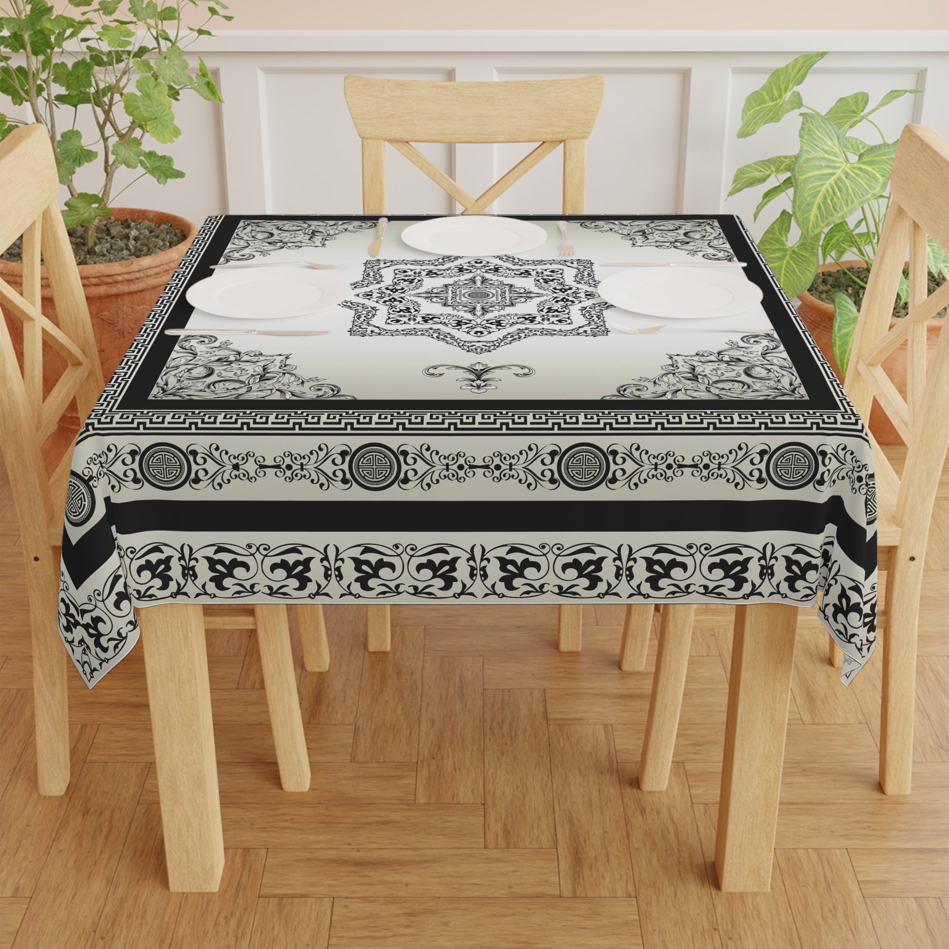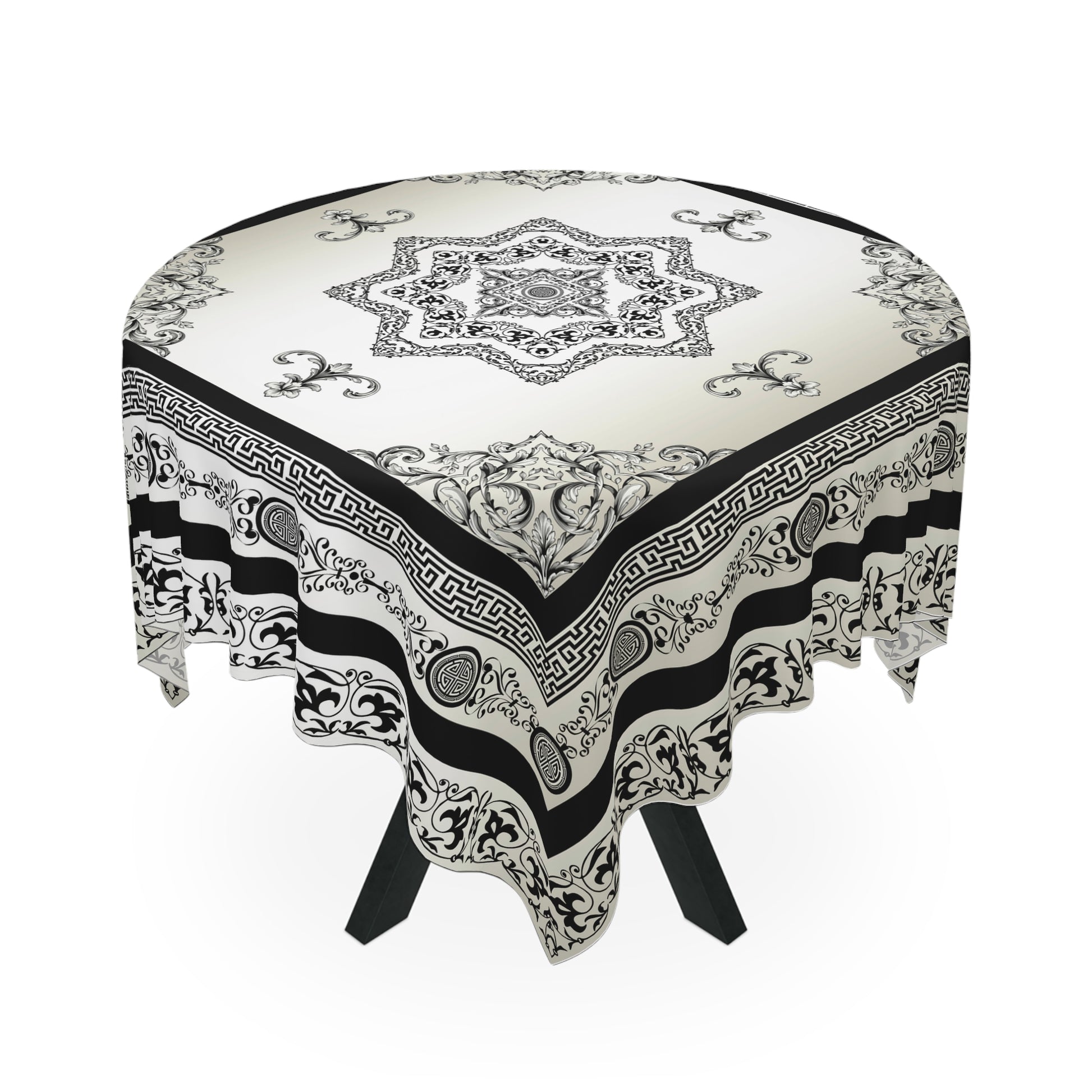 Black Cream Greek Key Ornate Baroque Tablecloth